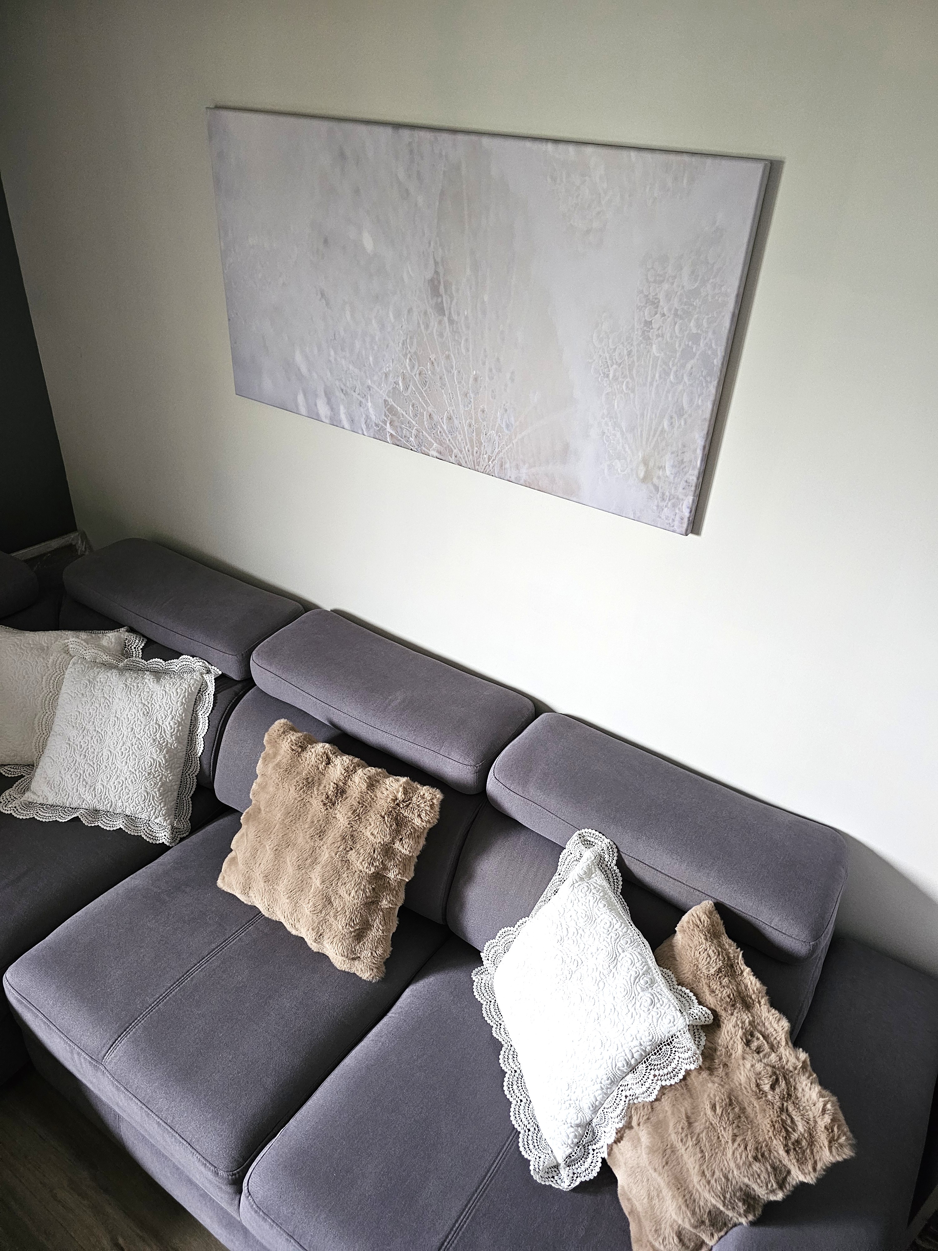 - Tänk på att du köper en bild på duk med tryck. Mönster som t.ex. glitter, guld, silver, betong, marmor, rostig plåt, trä etc. är tryckta och kan därför se annorlunda ut än deras verkliga motsvarigheter.