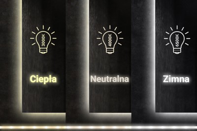 Tillgängliga ljusfärger: Varm (3000K) / Neutral (4000K) / Kall (6500K).